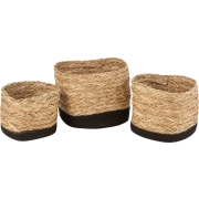 J-Line Set of 3 baskets square grass/cotton natural/black