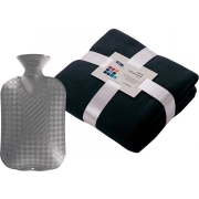 Fleece deken/plaid 200 grams kwaliteit in de kleur donkergrijs met formaat 130 x 170 cm samen met een warmwater kruik zilvergrijs van 2 liter. Wasvoorschrift bank dekentje: machine wasbaar op 30…