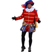 Super origineel pietenkostuum in een mooie polyester fluwelen kwaliteit met goudkleurige satijnen details en rijk bestikt met goudgalon, jas met afneembare (gevoerde) cape, broek met een elastieke…