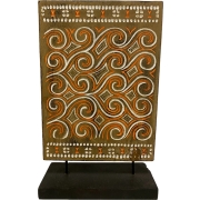 Teakhouten ornament Sudut heeft heldere oranje details, waardoor het kleur in huis brengt. De mooie golvende patronen zijn ambachtelijk gemaakt, waardoor elke variant uniek is. Een waar…