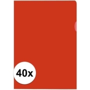 40x Insteekmap rood A4 formaat 21 x 30 cm. L-map van stevige kwaliteit transparant PP 120 m??, generfde uitvoering, copysafe en antistatisch. De map is aan de boven- en rechterzijde open en is…
