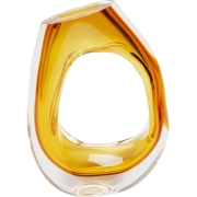 Deze glazen vaas speelt met transparantie en kleur. Het gedurfde ontwerp, met een holle kern, benadrukt het water dankzij het geelgetinte glas, wat een fascinerend visueel effect creëert. Elk stuk is…