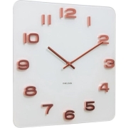 Karlsson Vintage glass square - Wandklok - Glazen wijzerplaat met kunststof cijfers - Wit - Koper