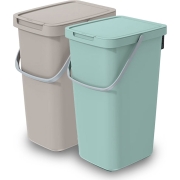 Set van 2x prullenbak of afval emmer voor in de keuken of op/naast het aanrecht. Met deze set is het eenvoudig je afval te scheiden, dankzij de verschillende kleuren. Voorzien van afsluitbare…