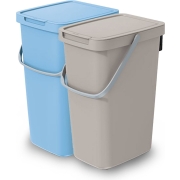 GFT/rest afvalbakken set - 2x - 25L - beige/blauw - 26 x 29 x 48 cm - afval scheiden -