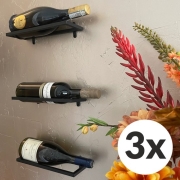 Keufens Wijnrek Muur - Set van 3 - Mat Zwart - Metaal - Wandmontage - Hangend - Wijnfleshouder - Wijnhouder