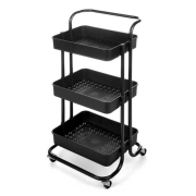 Keuken opberg trolley/roltafel met 3 manden zwart 46 x 30 x 79 cm -