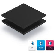 Deze geschuimd PVC plaat is zwart van kleur (RAL 9004) en heeft een dikte van 5 mm. De PVC plaat heeft een licht gestructureerde toplaag met een matte uitstraling. De geschuimd PVC plaat is 50%…