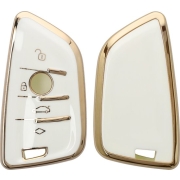 kwmobile autosleutel hoesje compatibel met BMW 3-knops Smart Key autosleutel - autosleutel behuizing in wit / goud