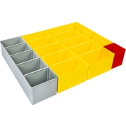 Sortimo 6000010086 iB 72 Vakverdeling 15-delig Voor i-BOXX 72 / bestaande uit: 1 x insetbox A3 rood, 12 x insetbox B3 geel, 1 x insetbox I3 grijs incl. 2 scheidingswanden. De…