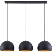 3-lamps Tarjei hanglamp voor de eetkamer met zwarte en gouden stalen kappen Tarjei past in veel moderne omgevingen en is geschikt voor het verlichten van zowel eettafels als aanrechtbladen. In beide…