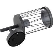 Elegante Yonan-buitenwandlamp met cilindrische polycarbonaat kap en schuine metalen stutten als decoratie. Yonan past goed in een moderne omgeving rond het huis en de binnenplaats en is een van de…
