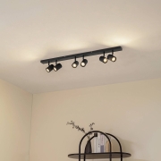 4-lamps, langwerpige plafondspot Stralino De plafondspot Stralino combineert een modern design met functionele veelzijdigheid. Deze 4-lamps spot is gemaakt van hoogwaardig rubberhout en robuust ijzer…