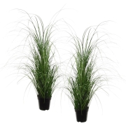 2x stuks louis Maes Finest Quality kunstplant, type siergras/kunstgras stelen/sprieten Bush in de kleur donkergroen. Hoogte van de grasplant is ongeveer 65 cm hoog en wordt geleverd met plug/pot…