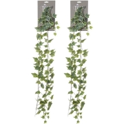 2x louis Maes kunstplant lange blaadjes slinger Klimop/hedera in de kleur groen. Afmetingen: 180 cm. Deze mooie kwaliteit kunstplant wordt geleverd met ophangoog. Materiaal plant: kunststof.…