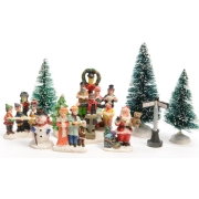 Kerstdorp set - 9-delig - zingende mensen - accessoires - 6 x 6,5 x 7 cm - polyresin -