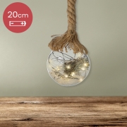 Kerstbal met jute touw en 40 LED lampjes - 20cm - Helder glas Deze fantastische kerstbal is gemaakt van glas (helder). Als de 40 LED lampjes branden geven ze warm…