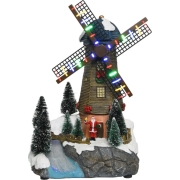 Kerstdorp molen - met draaiende wieken en verlichting - 30 cm -