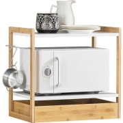 Mara Magnetronrek - Keukenplank Voor Magnetron - Opbergrek - Keuken Organizer - 2 Planken - 1 Lade - Vaatdoekhouder - Bamboe - MDF - 55 × 35 × 49 cm