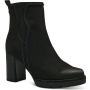 Marco Tozzi dames enkellaarzen art 2-25328-45 001 in zwart imitatie nubuck. Met ritssluiting op een blokhak.Met siergesp.…