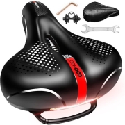 Fietszadel, gel fietsstoeltje, breed comfort memory foam fietszadel, waterdicht, gewatteerd, zacht, schokabsorberend fietszadel met reflecterende strepen voor stadsfiets, mountainbike