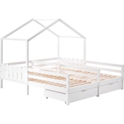 Merax Bed - 2 Eenpersoonsbedden 90x200 met Opbergruimte - Huisbed - Kinderbed - Wit