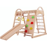 Merax 7 in 1 Multifunctioneel Speeltoestel voor Binnen - Speelgoed voor Kinderen incl. Glijbaan - Schommel - Ringen - Bruin