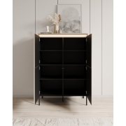 Dressoir Paz is een opbergkast in moderne, warme stijl. Het dressoir staat op hoge pootjes.De kast heeft 2 deuren. De deuren openen via verticale grepen. Achter de deuren zitten 8…