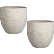2x stuks bloempot in de kleur shiny lightgrey stone gemaakt van keramiek voor een kamerplant - H31 x D33 cm. Deze ronde bloempot uit de Lester serie met mooie afwerking is een bloempot/plantenpot…