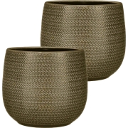 2x Mica Decorations - plantenpot/bloempot - keramiek aardewerk - bruin - 20 x 25 cm -