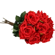 Kunstbloemen boeket roos Emy - 8x - rood - 31 cm - kunststof steel - decoratie bloemen -