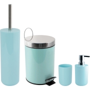 Badkamer accessoires set in het mintgroen, bestaande uit een pedaalemmer/toiletborstel, beker en een zeeppompje. De kleine afvalemmer is met 3 Liter inhoud en gemaakt van metaal. De toiletborstel…