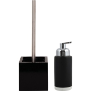 MSV badkamer accessoires set in de kleur zwart bestaande uit een keramiek zeeppompje 275 ml en een wc/toiletborstel 38 cm in houder. Het bovenste deel van de wc-borstel steel is van metaal, de…