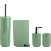 Badkamer accessoires set in het groen, bestaande uit een pedaalemmertje, een toiletborstel en een luxe zeeppompje. De kleine kunststof pedaalemmer heeft een inhoud van 3 liter. De toiletborstel in…