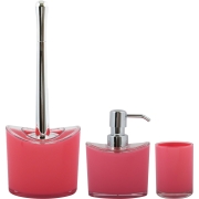 Badkamer accessoires set in het fuchsia roze, bestaande uit een toiletborstel, drink/tandenborstel beker en een zeeppompje. De toiletborstel in houder/WC borstel is gemaakt van luxe kunststof met…