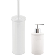 Badkamer accessoires set in het wit, bestaande uit een toiletborstel en een luxe zeeppompje. De toiletborstel in houder/WC borstel is gemaakt van keramiek met rvs steel. De stijlvolle…