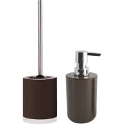 Toiletborstel in houder 38 cm/zeeppompje set Moods - keramiek - kastanje bruin -