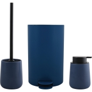 Badkamer accessoires set in het donkerblauw, bestaande uit een pedaalemmertje, een toiletborstel en een luxe zeeppompje. De kleine kunststof pedaalemmer heeft een inhoud van 3 liter. De…