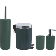 Badkamer accessoires set in het donkergroen, bestaande uit een pedaalemmertje, een toiletborstel en een luxe zeeppompje. De kleine kunststof pedaalemmer heeft een inhoud van 3 liter. De…