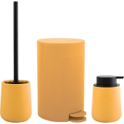 Badkamer accessoires set in het saffraan geel, bestaande uit een pedaalemmertje, een toiletborstel en een luxe zeeppompje. De kleine kunststof pedaalemmer heeft een inhoud van 3 liter. De…