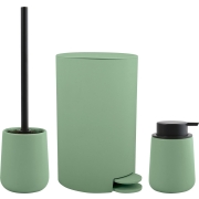 Badkamer accessoires set in het groen, bestaande uit een pedaalemmertje, een toiletborstel en een luxe zeeppompje. De kleine kunststof pedaalemmer heeft een inhoud van 3 liter. De toiletborstel in…