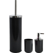 Badkamer accessoires set in het zwart, bestaande uit een pedaalemmer/toiletborstel, beker en een zeeppompje. De kleine afvalemmer is met 3 Liter inhoud en gemaakt van kunststof. De toiletborstel…