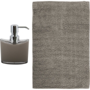 Badkamer droogloopmat/tapijtje met kortharige noppen van microfibre met bijpassende kleur zeeppompje. Serie: Bologna. Kleur: taupe. Voor de wasbak of het bad, comfortabeler bij het uitstappen.…