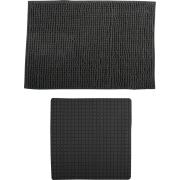 Douche anti-slip mat en grote droogloopmat van langharig microvezel set voor in de badkamer. Serie: Venice. Set van 2x stuks in 2 formaten. Kleur: zwart. Voor in de douche en voor de wasbak of het…
