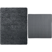 Douche anti-slip mat en grote droogloopmat van langharig microvezel set voor in de badkamer. Serie: Venice. Set van 2x stuks in 2 formaten. Kleur: donkergrijs. Voor in de douche en voor de wasbak…