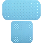 Pvc badkamer douche/bad anti-slip matten set van 2x stuks in 2 formaten. Kleur: ijsblauw. Voor in de douche en voor de wasbak/het bad of voor bij het uitstappen. Afmetingen 53 x 53 cm en 39 x 99.…