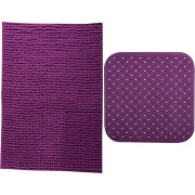 Douche anti-slip mat en droogloopmat van microvezel met noppen set voor in de badkamer. Serie: Sevilla. Set van 2x stuks in 2 formaten. Kleur: paars. Voor in de douche en voor de wasbak of het bad…