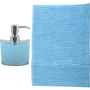 Badkamer droogloopmat met kortharige noppen van microfibre met bijpassende kleur zeeppompje. Serie: Bolzano. Kleur: lichtblauw. Voor de wasbak of het bad, comfortabeler bij het uitstappen.…