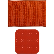 Badkamer droogloopmat/tapijtje met kiezel motief, laagpolig van microfibre met zelfde kleur zeeppompje. Kleur: oranje. Voor bij de wasbak of naast het bad, comfortabeler bij het uitstappen.…