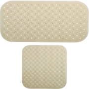 Rubber badkamer douche/bad anti-slip matten set van 2x stuks in 2 formaten. Kleur: beige. Voor in de douche en voor de wasbak/het bad of voor bij het uitstappen. Afmetingen 54 x 54 cm en 36 x 97…
